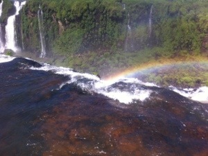 Iguazu Falls…is it worth it to make the trip? I pondered this question before deciding to get a ticket and go. I justified the purchase by deciding I might never get so close again, and everyone who mentioned visiting said it was one of the most awe-inspiring places they had seen. My flight took me to the Brazilian side of the falls, but I read that it was cool to see them from Argentina, too. Most people take two days, one for each side, or book a tour to navigate the distance. I was feeling confident that I could do both sides via public buses but I am not sure where I got that idea. My hotel was within walking distance of the Brazilian entrance, which was a big help because I was in the gate by 10:00 and out by noon. In Brazil, you can walk along trails that line the falls with distant views. From each viewpoint, you are awed by different angles and there were often rainbows in every direction. The national park probably had more to offer, but I stuck with the trails and various scenic viewpoints. The falls were endless and strong and a sight that is hard to describe. Amazing is a word I use too much, but I am struggling to find a word that is forceful enough to provide the image of standing on the edge taking in the sights and sounds. I left the Brazilian side and began the process described by the hotel clerk to get the Argentinian entrance. I sat on the empty and lonely Sunday afternoon road waiting for my first of three buses. The heat and sun were oppressive on my sunburn souvenir from Rio, but after a thirty minute wait, I boarded the bus with the sign reading “Argentina.” I always find a smile and perplexed look to be the best way to get help, and this time was the same. In Brazil, each bus has a driver and a person on a lofty seat who takes the money and makes change. I sat close to this cashier after telling her the destination I had in mind. She pointed out my stop and after another thirty minute wait, I boarded bus number two. This bus included a short stop for border crossing and passport stamps. I arrived at the Argentinian terminal and boarded my final bus of the trip…taking me directly to the entrance of the falls. Needless to say, it took great effort to see both sides in one day, and my time in Argentina was short. I was a woman on a mission…walk to the bottom of the trails and take the short boat ride under the falls. It took about an hour before I was boarding the boat…tucked into a life jacket and with my belongings in a plastic case. Our group was mostly Argentinian and they had a lot of spirit, singing what I would guess were traditional songs and shouting for more water after every trip under. I loved getting soaked under the falls, even if it meant hanging out in wet clothes for my return trip. They were warmer that I would have guessed and the ride felt like a bit of high drama…getting whirled and swirled in the currents. It was worth the effort to cross the border because one day was just enough for me. My last stop on this part of my trip was a short flight to Sao Paolo where I will catch my flight to Johannasburg. If you are from Chicago, you will understand when I say that Sao Paolo is to Rio what Gary, Indiana is to us…geographically close but so not close to being the same. I hung out around my airport hotel and took a ride into downtown, but I am really just biting my nails now feeling ready to move.