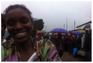 We arrived at the border at 5:30 am but the office did not open until six. Everyone lined up, I mean pushed into a pile near the gate, and like a scene out of the movie, people started sprinting to be first in line when the gate opened…hundreds of people, over muddy terrain, and while pushing others away. We walked along…muddy water crawling up our legs, to a dignified “women only” line where people waited patiently. The actual immigration process was fast…$100 for the Visa, a photo, and fingerprints, and I was ready to go. Betty came with me while her family held onto my luggage. Travel books would say it was a critical error to leave my luggage out of my sight, but I felt fine with it and often choose trust over guidebook advice when I feel good about people. Betty helped exchange money for me, bought a bus ticket, and hugged me goodbye before sending me off with the guy “sold” us a ticket and promised to get me on a bus. What he did not tell Betty was that he sold us a ticket he did not have, just the dream of one he planned to buy. So, his “follow me” became more frantic as each bus told him they were sold out. It got to the point where he asked a friend for help…one had my luggage on his head and the other had my ticket money…and as they RAN, I huffed and puffed to keep up over the mud (yes, flip flops) and through the crowds. It wasn’t too hard until they started running in different directions and I had to choose if I would follow the money or luggage. I stuck with the luggage and the money showed up as soon as we found the last available bus. I was relieved!