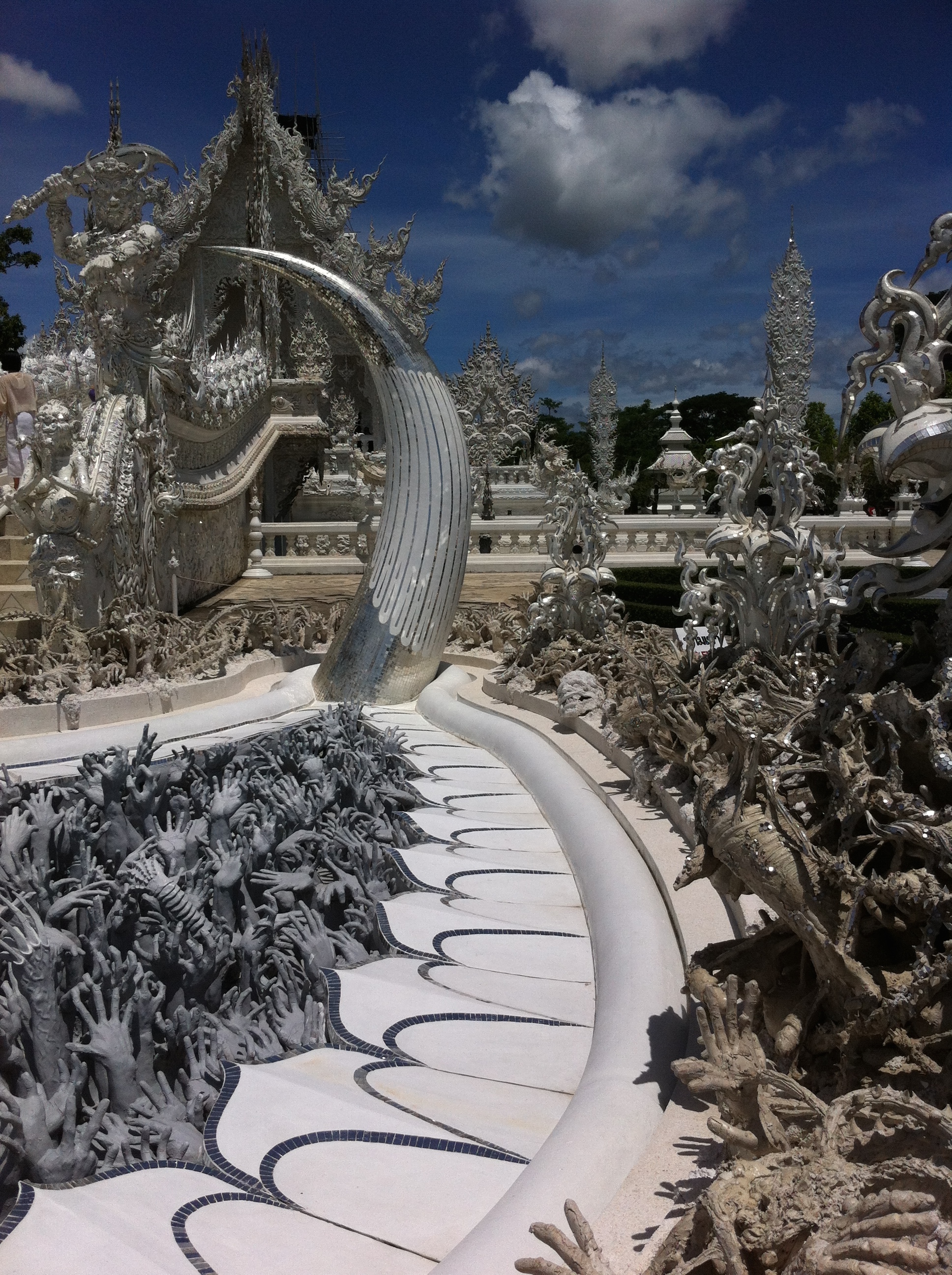 The White Temple was a bit crowded when we arrived, and while it was very cool to see, it felt a bit dark to me. The ceramic hands reaching up from the underground gave a sense of helplessness. It was an unusual array of ancient and modern symbols of evil things that made me feel heavy while also feeling like I was surrounded by a tourist showplace. At the same time, you couldn’t help but be a bit awed by all of it.