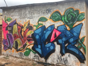 As for our initial murals, my role was limited to sitting in awe at the work of local artists and seeking donations for supplies. There is a bursting street art scene in Africa and I was proud to observe some of the talented hands who beautify blank spaces. As we traveled with Sparrow and Rach, I glimpsed firsthand how artists view the world with a lens I don’t own, as they noted empty walls left to fill and closed their eyes to “see” completed masterpieces before their work began.