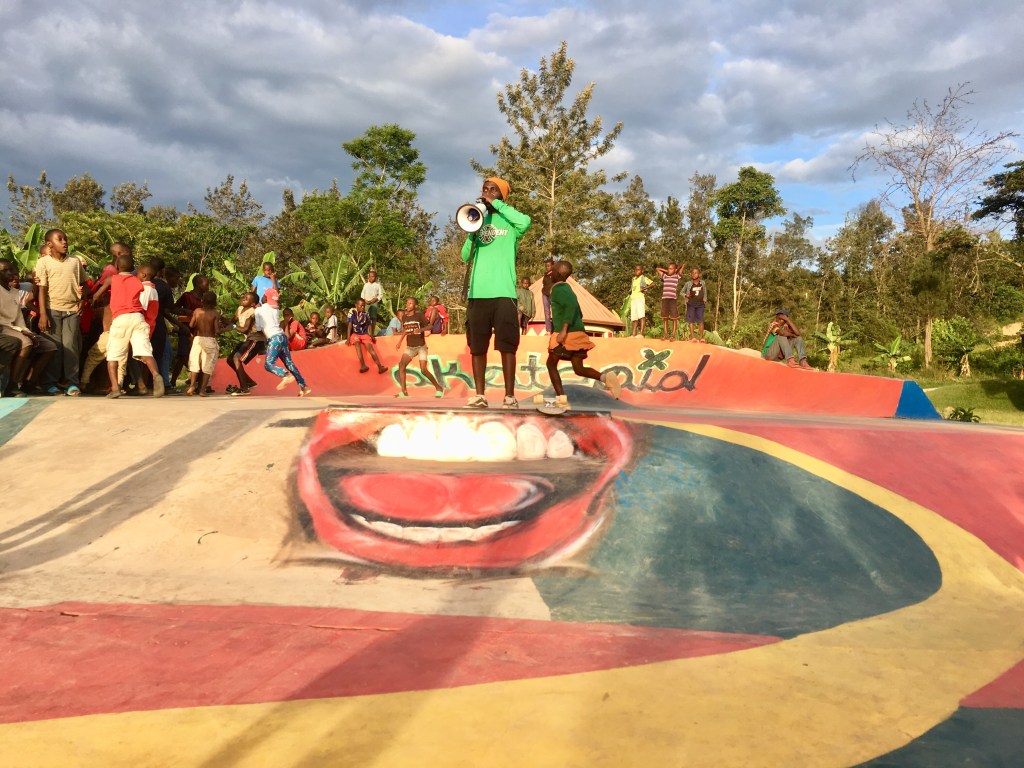 The skateboard park at SOS Children’s Village in Kigali, Rwanda is a breathing example of a mental health prevention network. From 3:00 – 6:00 PM each day, children converge from all directions on this colorful play place. Led by Skateaid volunteers, hopeful skaters take brooms in hands to clear dust from the previous day and prepare the park for the whooshes and rolls of flying decks. A collection of boards and donated shoes line the entrance ramp as eager children anticipate their moments in the spotlight and dream of floating through the air with varied levels of expertise.