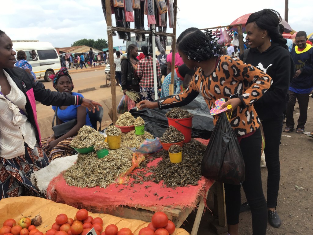 On Saturday, in preparation for our visit to the correctional facility on Sunday, we shopped at the local market for Chitenge fabric that we could used to cover up to follow local customs. It was fun shopping with the girls for clothes – and then some groceries for the lunch they made. They even bought some dried caterpillars which I must say – for caterpillars – tasted good. Even though I still can’t believe I ate caterpillars. It’s funny how our cultural food hang-ups run deep. The dried caterpillars were similar to a small piece of a pretzel – but my own bias made it feel different. I also know, there are things I eat at home that others wouldn’t dream of eating. This is why I love the way travel shows us new ways to be.