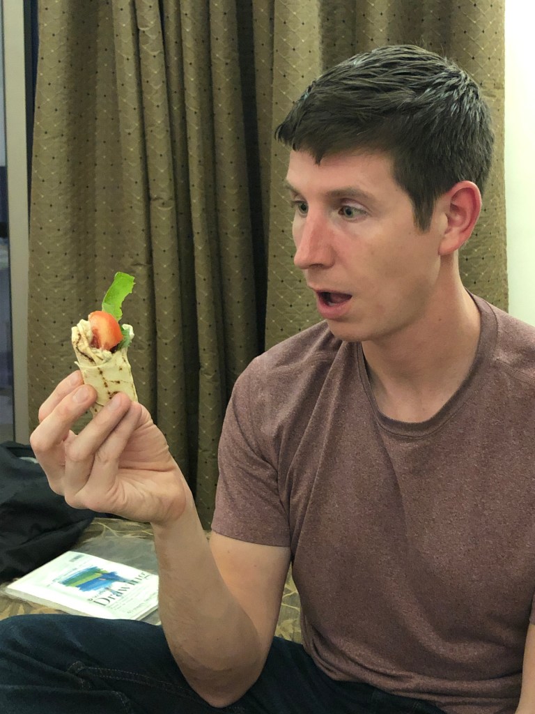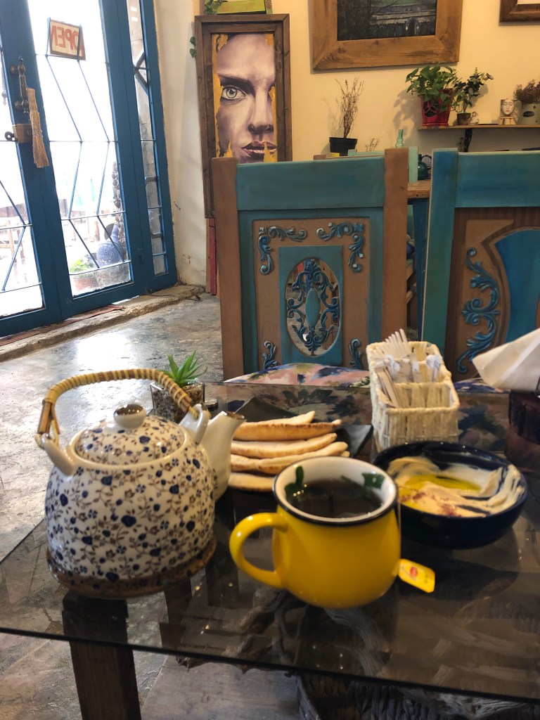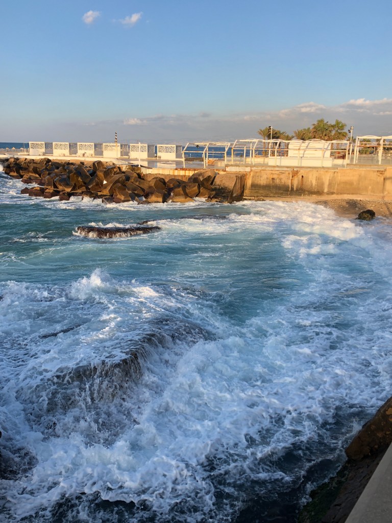 In both places, having friends along increased the ease of renting a car. To me, driving a car in an unfamiliar place is a two-person operation with a driver and navigator. In Lebanon, Brian was a driver and I was co-pilot. Usually, I am happy to drive, but sitting back and enjoying the mountainous views from the passenger seat was exquisite. As we visited destinations throughout Lebanon, we got splashed by waves, took a cool swim (mine was more of a toe dip until a wave pulled me in), and did a tiny bit of hiking. Even with exotic food options, most of our meals were shared grocery store treats at the end of our days.