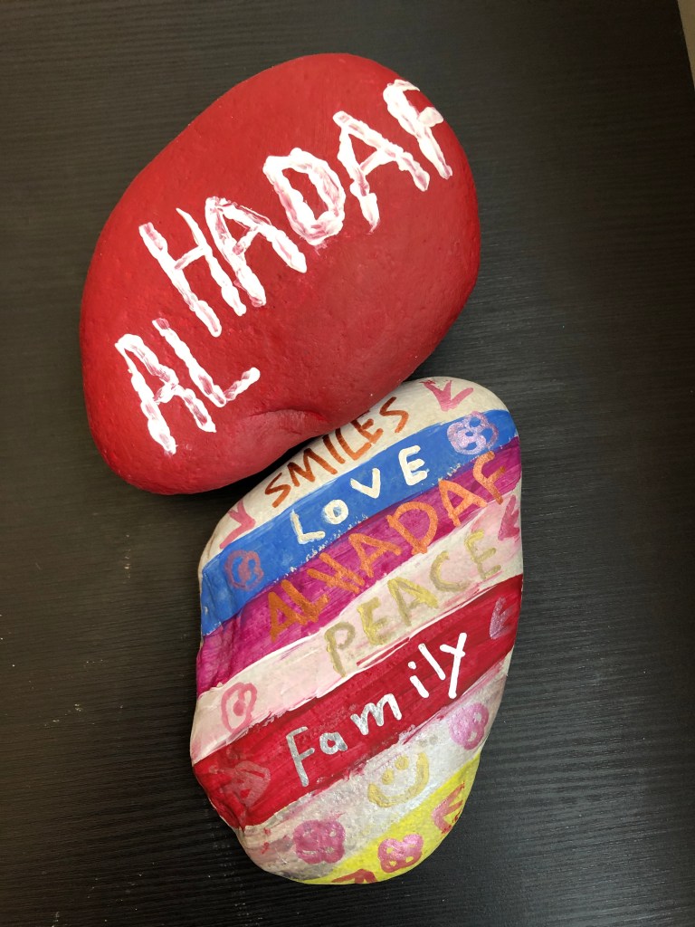Projects like AlHadaf, Kindness Rocks, and Paper for Water are making a difference because they offer tangible and positive outlets that build communities. And, I am still in awe that we can be partners while miles apart.