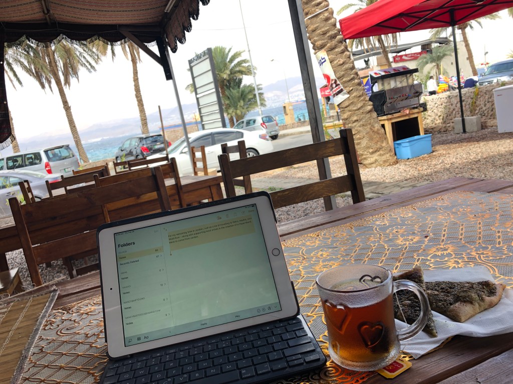(Like right now, when I am sitting at a cafe near the Red Sea with a beautiful view, cup of chai, and some zatar bread while planning for my next destination)