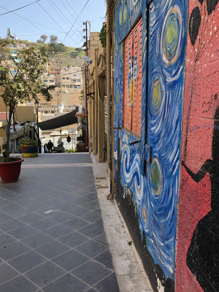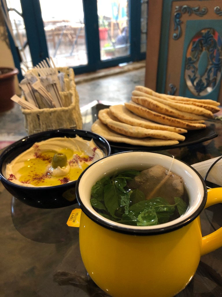 Zaizafoun Art Cafe stands proudly at the halfway point down the stairs heading toward the bustle of downtown Amman. The colorful artwork outside and welcoming decorations inside invited me in for my first of many hours spent enjoying tea, snacks, and time for writing.