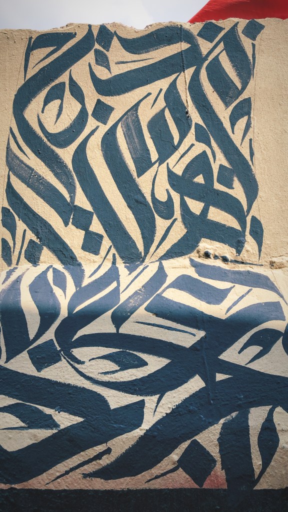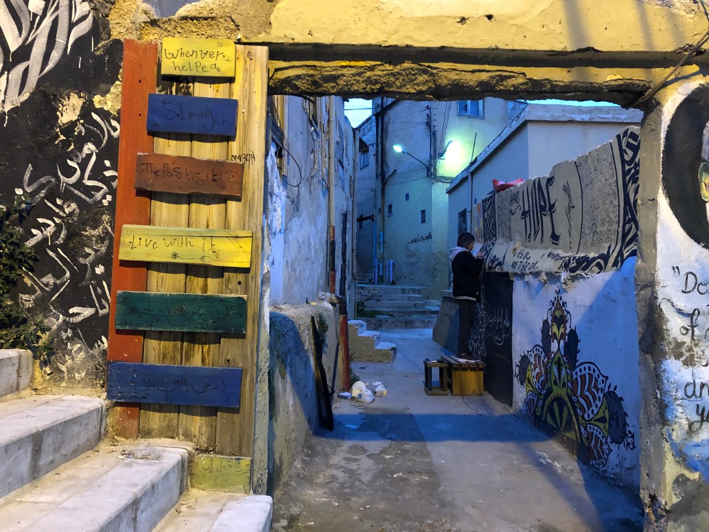 Entering the corridor at the top of the steps, you are first struck by bright street art that seemingly appears out of nowhere. A “Starry Night” inspired piece stares regally across the walkway at a whirling dervish surrounded by a circle of Arabic calligraphy.