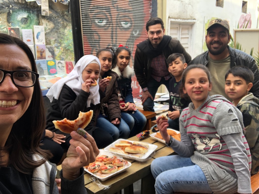 Telek brimmed with excitement as he also told us about the Jadal Center for Culture and Knowledge where his friends volunteer each week to host a group of Syrian refugee youth. Every Friday morning, the young adults and teens meet for outreach sessions that include lesson on music, art, leadership, self defense and more. Children are brought to the center on a bus to enjoy the center and young adult mentors and friends who eagerly await their arrival.