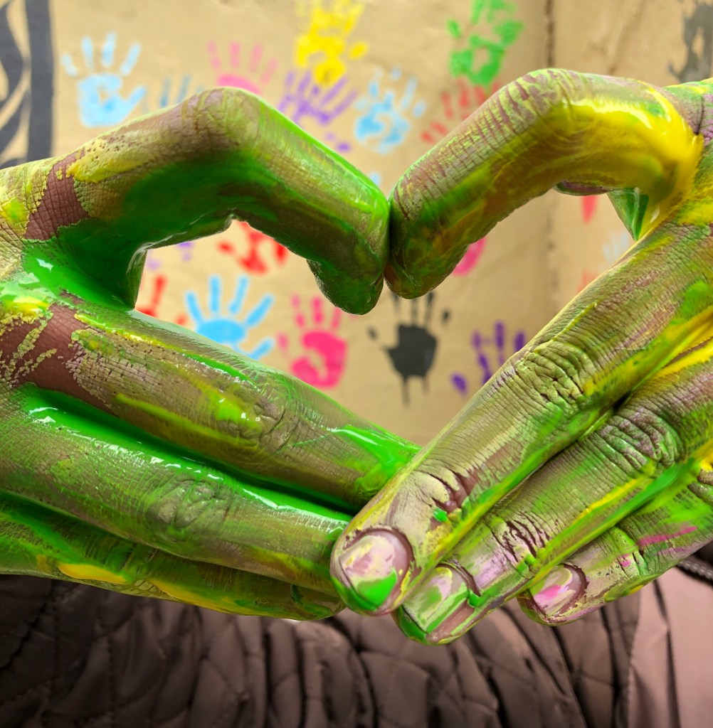 Handprint painting was exactly like you would expect – fun and a bit messy. Giggles were everywhere as oozing paint squished between fingers and plopped onto waiting walls.
