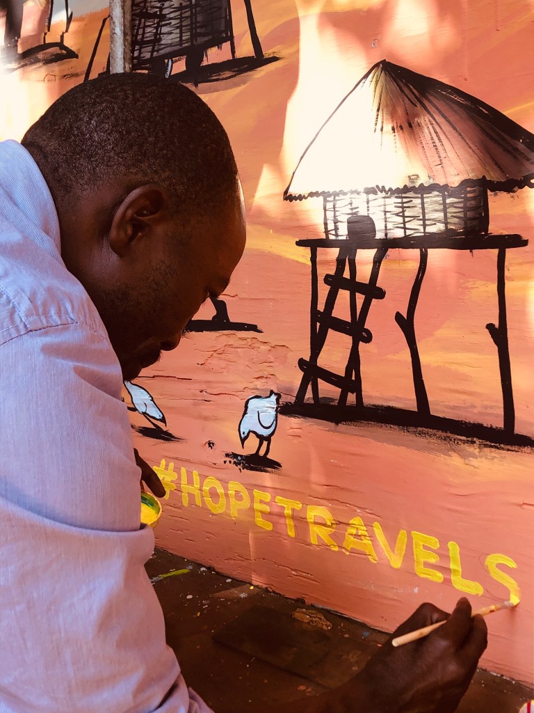 As we walked and enjoyed our conversation, I asked Respect about his work. His response was, “I am an artist.” It felt like a flash of Divine intervention… a purposeful meeting and invitation to work together. Not having secured a local artist for a hope mural in Malawi, I feel an immediate assurance that Respect would be the guy. As I told him about the Hope Travels project, we decided that he would begin the mission of locating a community space to paint. We agreed it should be in a highly public spot where the message of hope would feel valued and fruitful.