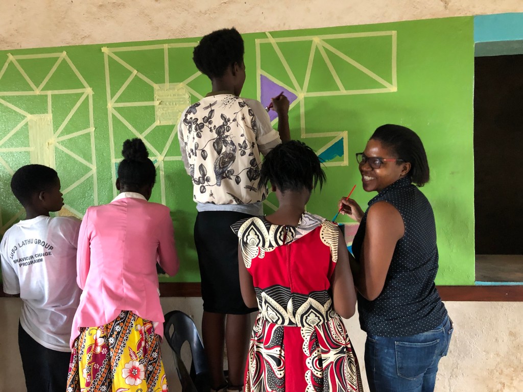 In two short days, we painted a mural with teens from Samaritan’s Trust which is an organization that finds children living on the streets and takes them in for vocational training and leadership development. We also partnered with Chikondi Girls Project and Rehabilitation Hope – two organizations providing support for children, teens, and young adults. Together, we shared information about mental health and the importance of raising visibility through proactive conversations and education with young adults.