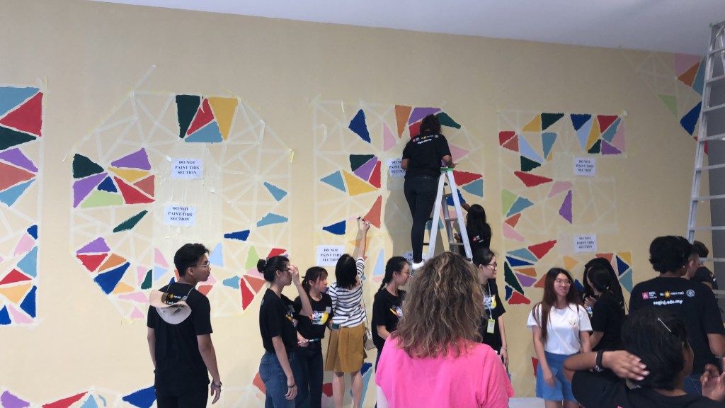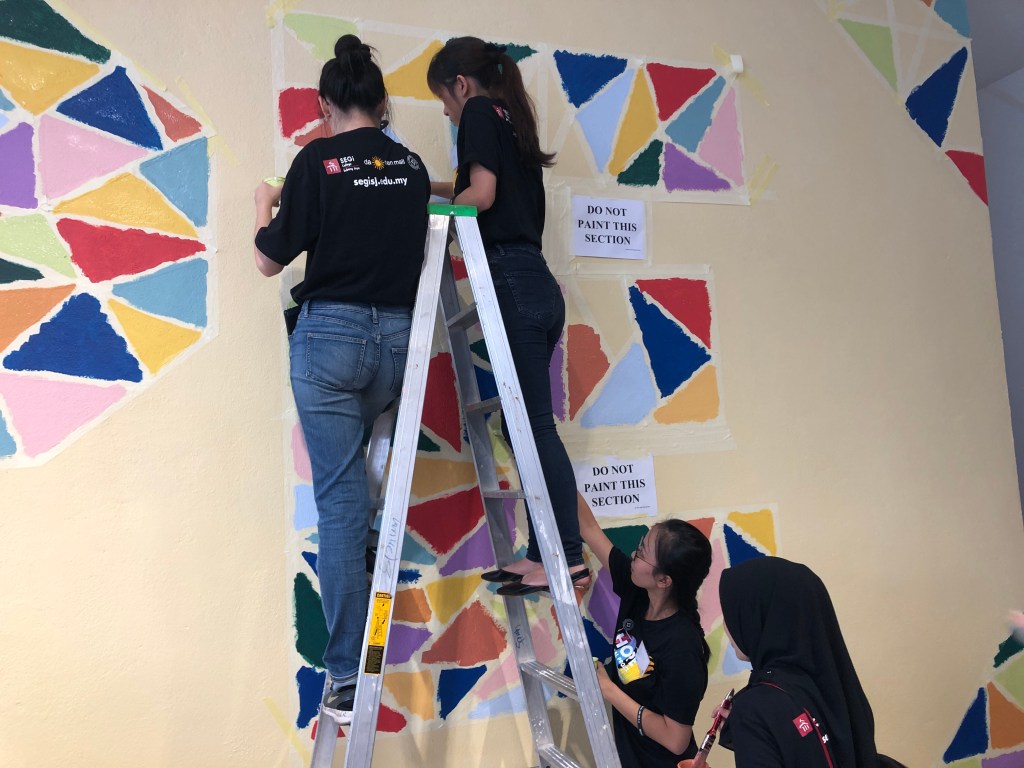 At the end of the workshop, Carolyn Choo, Head of the Faculty of Education said, “We should make a mural here.” In just a few hours, she contacted Da-Men which sits next to the Segi College Subang Jaya campus, and we had a meeting scheduled for the next day.