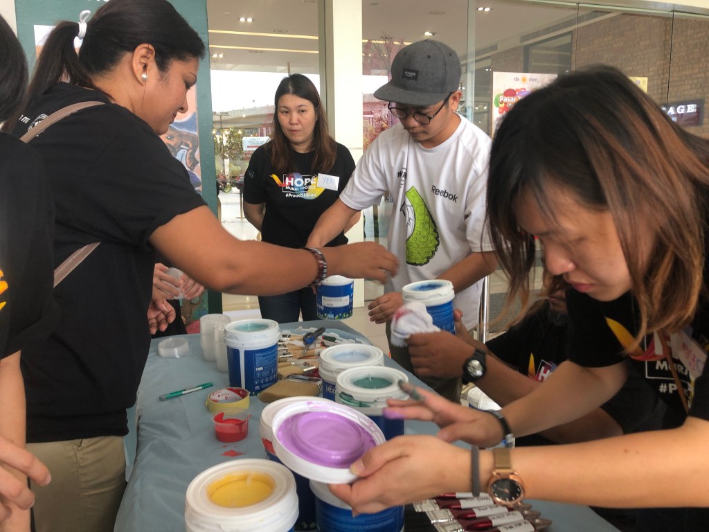 Graphic designers from Segi Collage created an amazing Hope Mural Project logo and the Da-Men graphic design team created mental health outreach information to place on a pillar near the mural. We even got our own T-shirts!